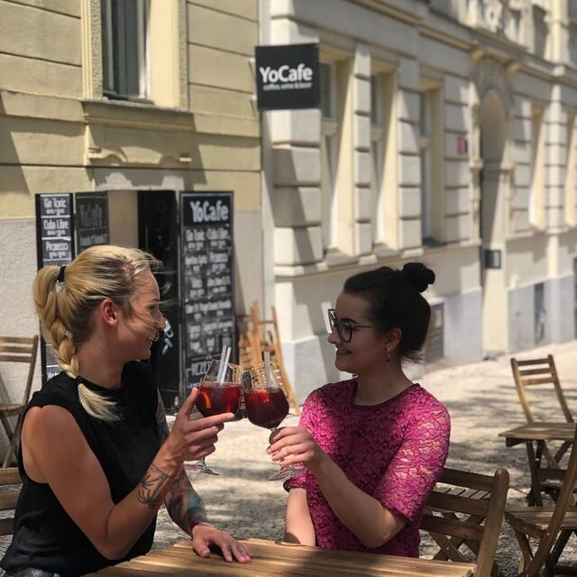 Nabízíme skvělé prostory a k tomu jedinečné zážitky z míchaných nápojů od našich barmanů. Vítáme Vás v baru YoCafe! Jako vždy si u nás užijete velkolepou atmosféru a zároveň Vám připravíme nečekaný požitek díky našim vlastním koktejlům. V létě Vám nabízíme možnost využít naši zahrádku.